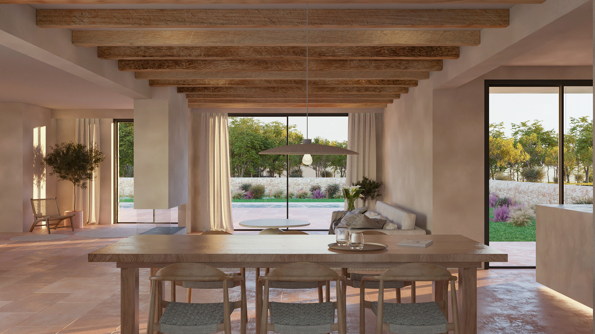 5. Aplicar texturas, añadir mobiliario, iluminación interior y vegetación.